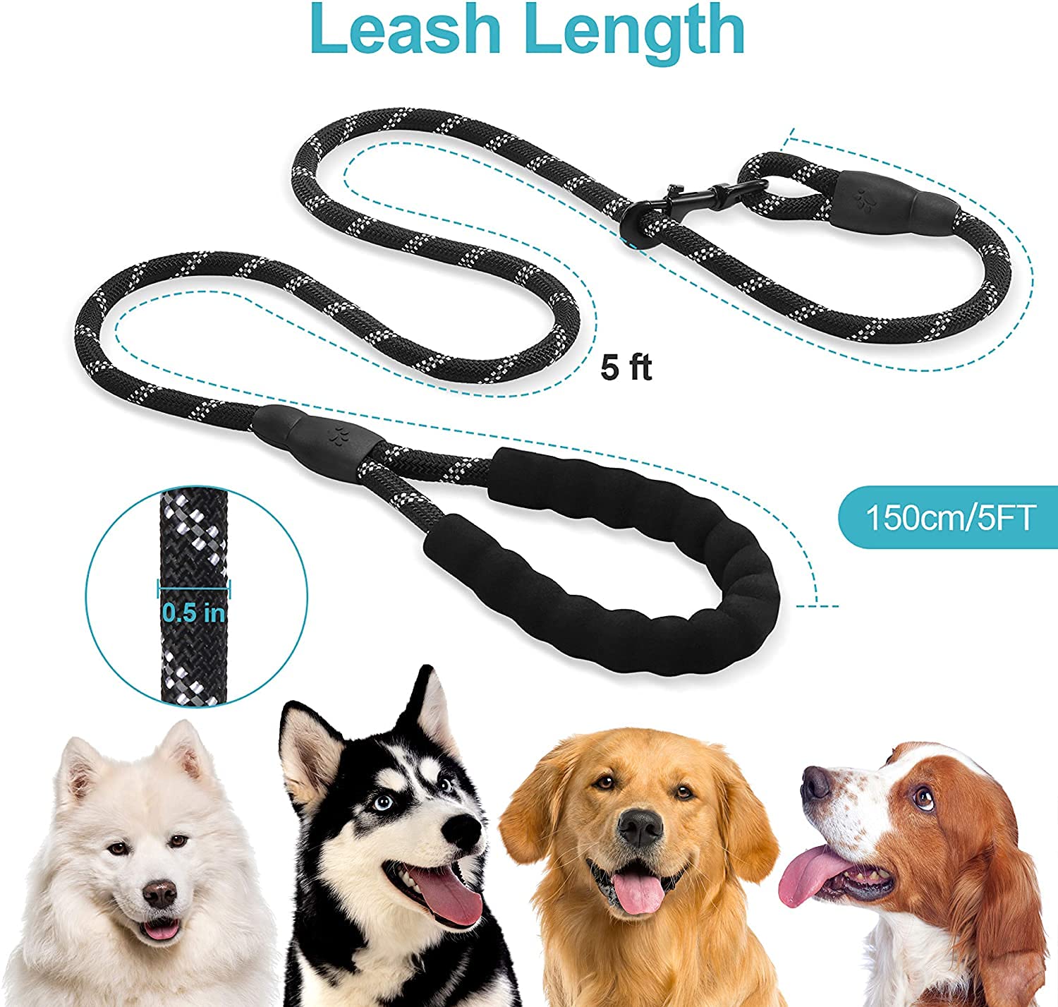 Thick Reflective Heavy Duty Leash with Anti-Slip Padded Handle (5 feet)