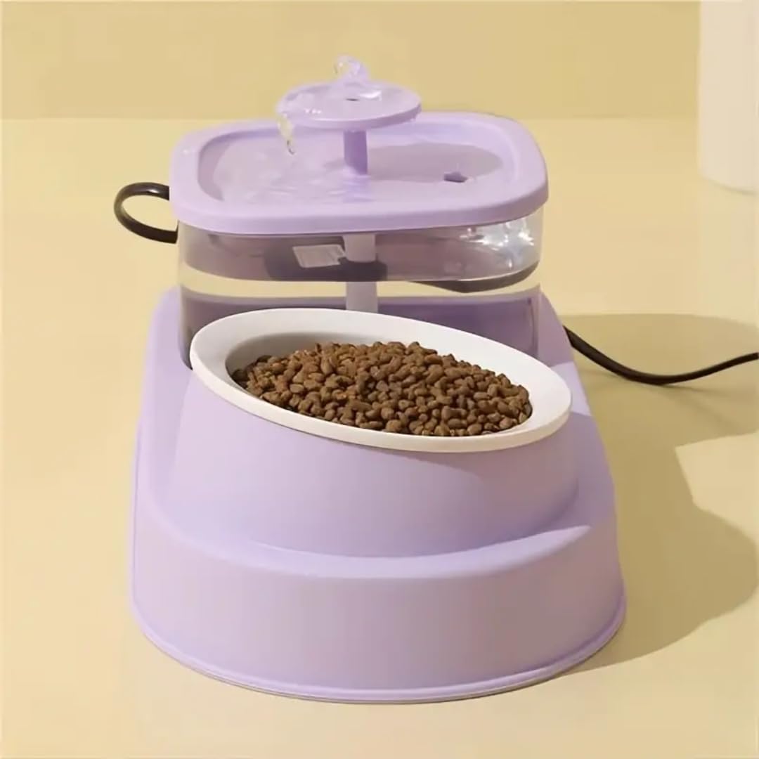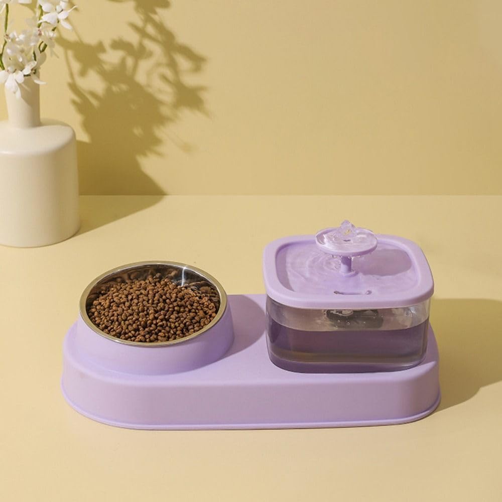 utomatic Pet Water Fountain with Filter System, Ultra-Quiet Pump, BPA-Free 2-in-1 Drinking & Feeding Station for Cats & Dogs (Purple, 1 Liter)
