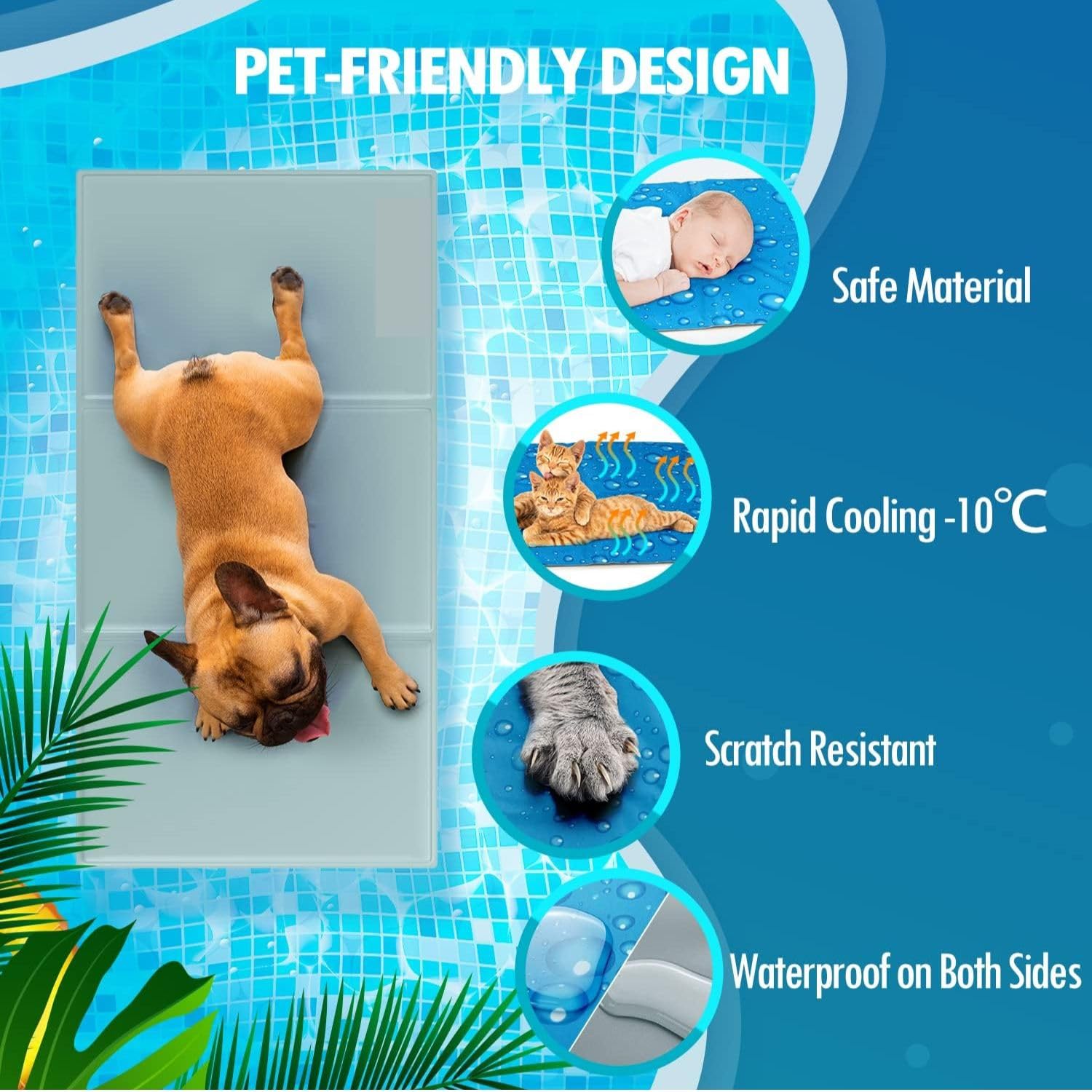 Durable Dog Mat: The strong, resilient mat for dogs has a non-toxic cooling gel within that doesn't need energy, water, or freezing to work. Simply use a moist towel to wipe the surface clean. Do Not brush the surface heavily, and do not hang it for long time.