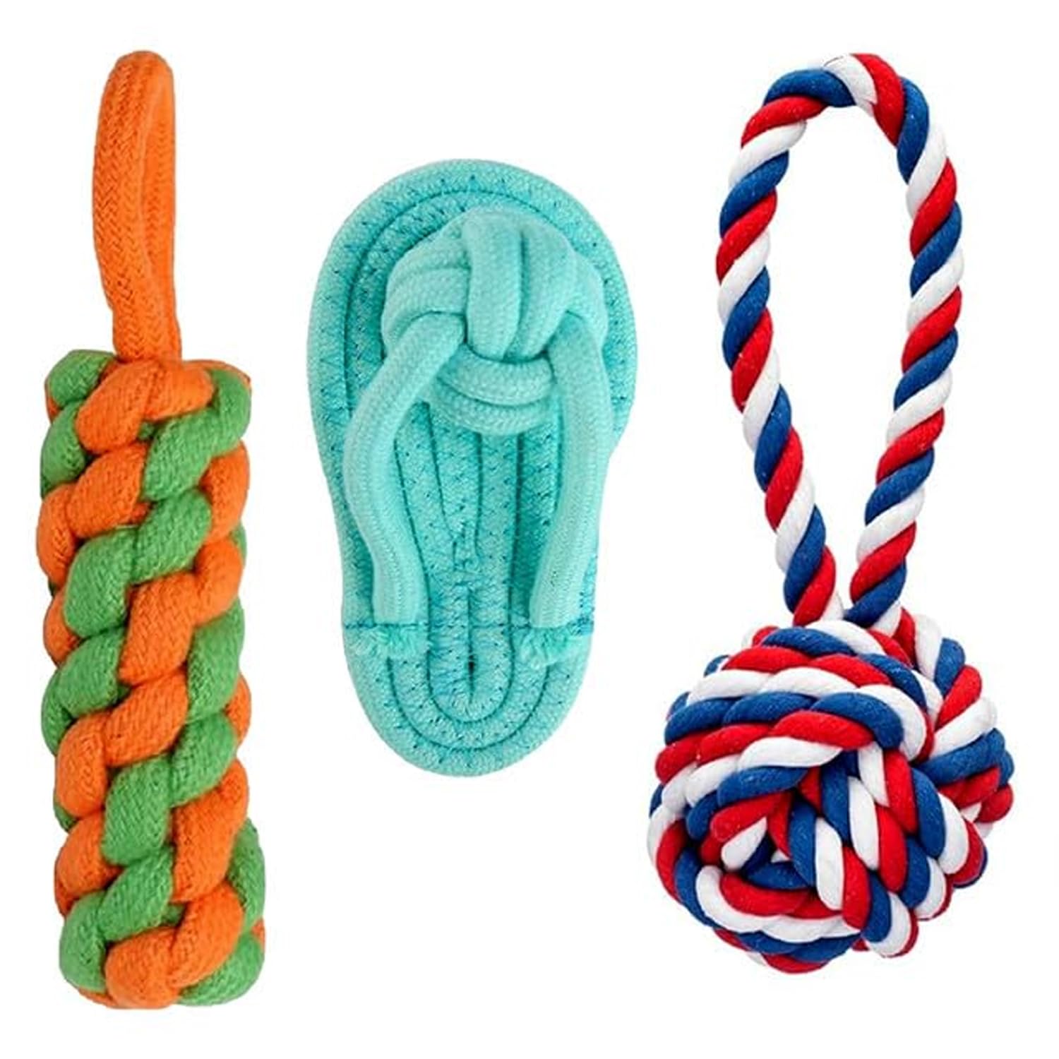 Dog Chew Toy Cotton Rope Toys Slipper Cotton Ball Rope Knotted Cotton Chew Dog Toys for Playing, Teeth Cleaning and Training (Color As Vary, Pack 3)