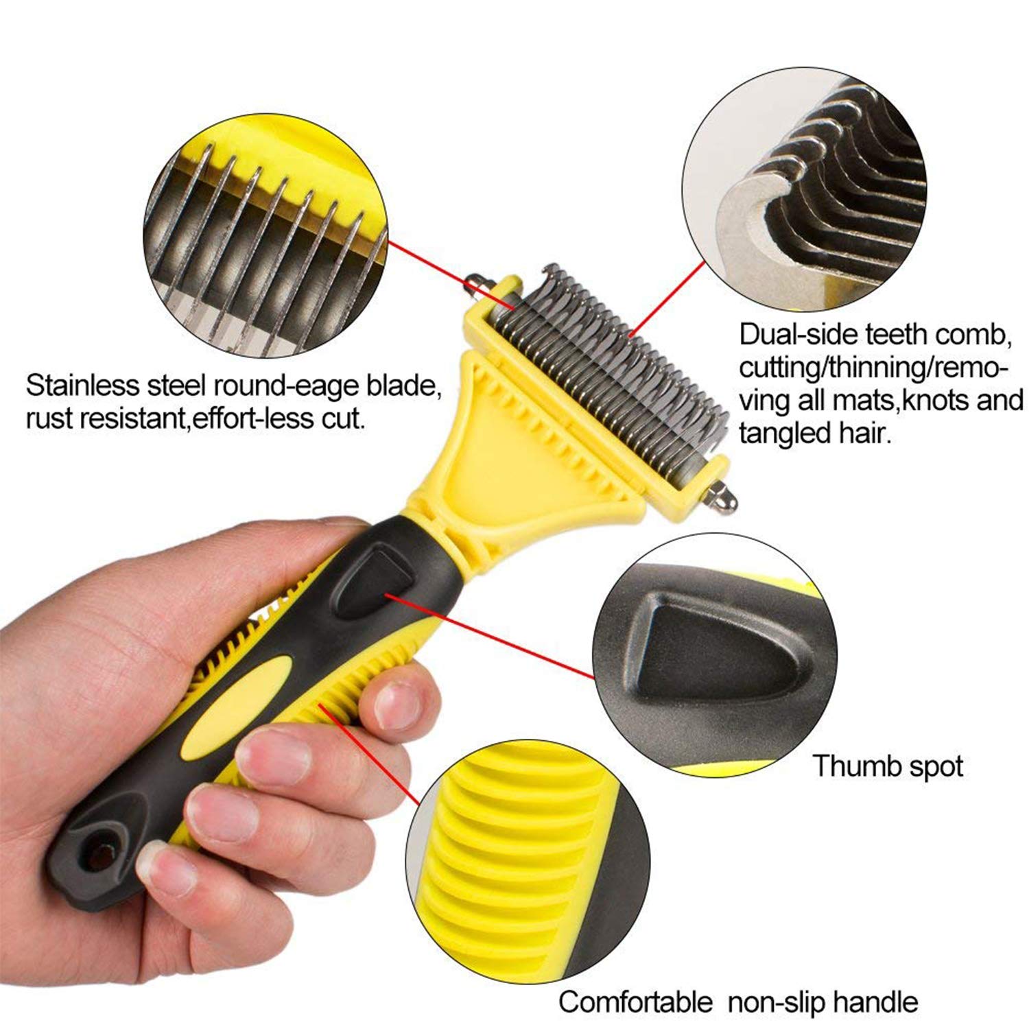 Grooming Dematting Rake Comb for Dogs & Cats, Double-Sided Blade