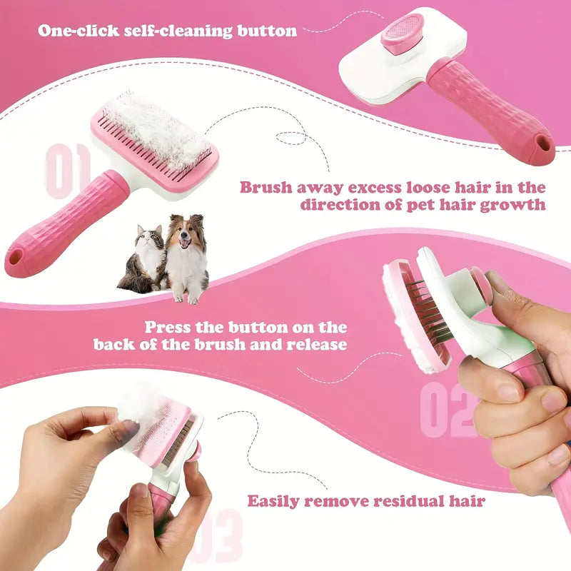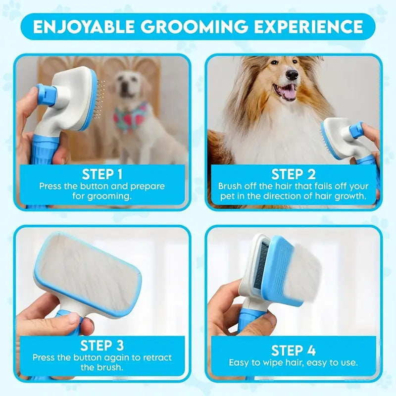 - One-Click Self-Cleaning - Press the button to retract the bristles, making it quick and easy to remove collected fur. This slicker brush is ideal for frequent use, saving you time and keeping the tool ready for the next grooming session.