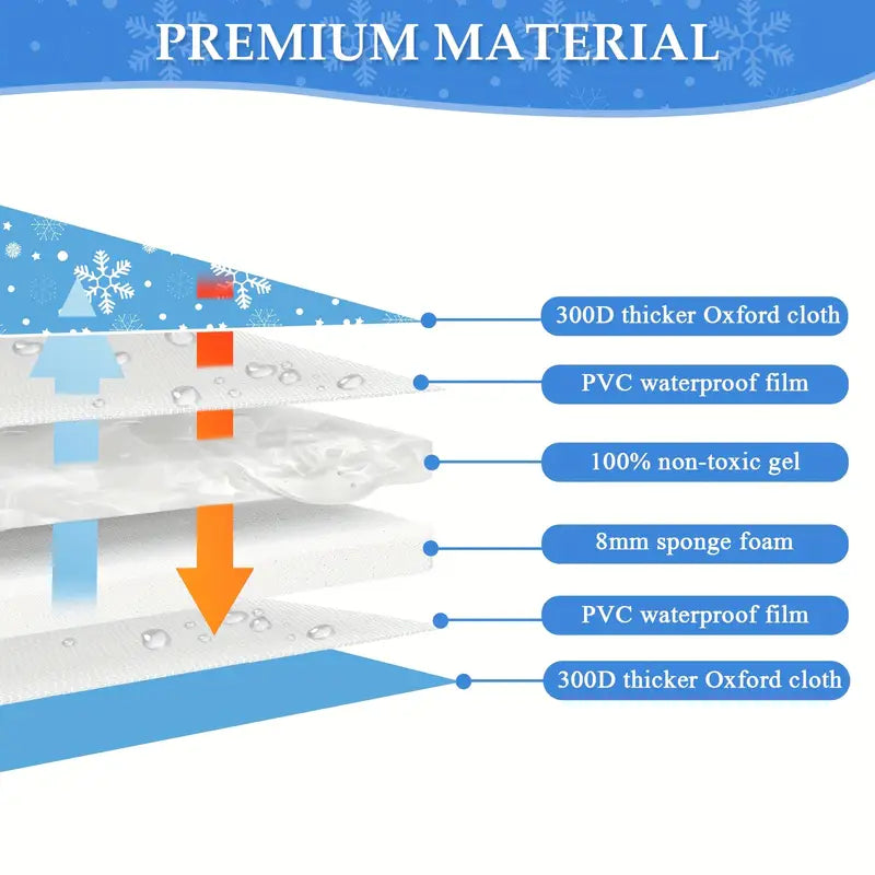 Durable Dog Mat: The strong, resilient mat for dogs has a non-toxic cooling gel within that doesn't need energy, water, or freezing to work. Simply use a moist towel to wipe the surface clean. Do Not brush the surface heavily, and do not hang it for long time.