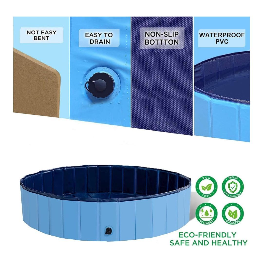 Collapsible and Portable Design: Our dog pool is collapsible design, it’s portable for you to carry. As a wading pool, it can be folded into a small size easy to store and carry with for camping or traveling, and also space-saving for storage at home.