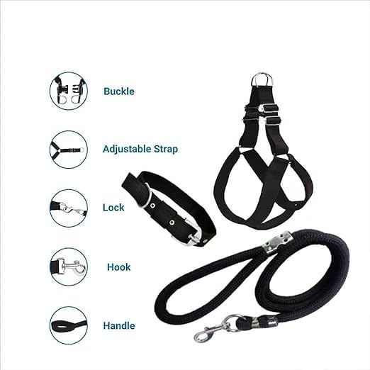 Harness, Neck Collar Belt and Rope Set (Set Of 3)