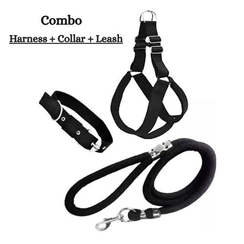 No Pull Dog Harness | Combo of 3 Pack, Dog Harness + Collar + Belt (Free Size)