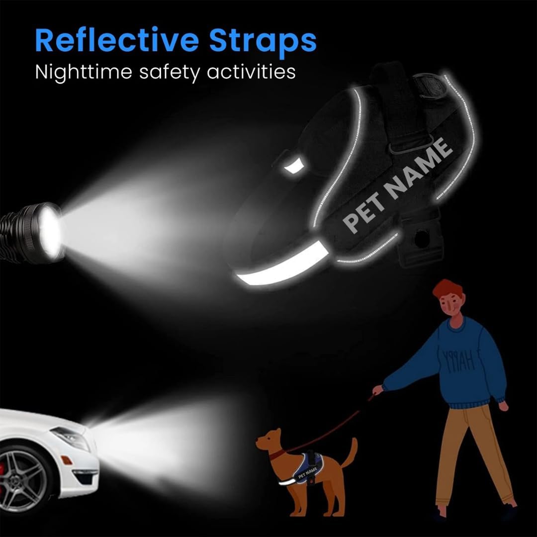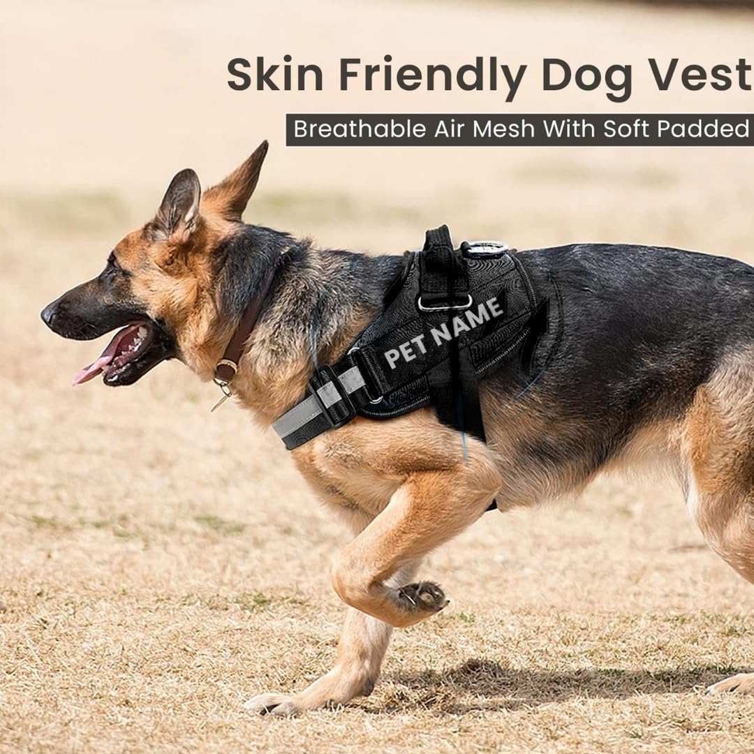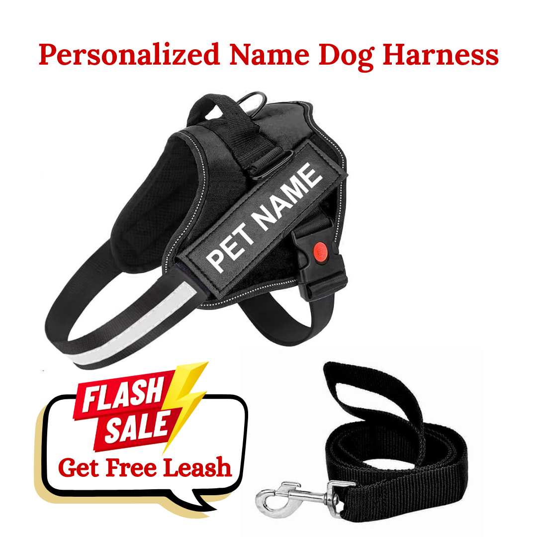 K9 Dog Harness With Name (Harness + Leash) Black