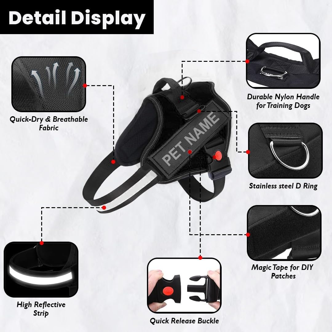 FITS ALL DOGS: Our harnesses can fit all dogs, including Shih-Tzus, Labradors, and Rottweilers. Simply estimate your dog's weight and choose the appropriate size from the sizing table.