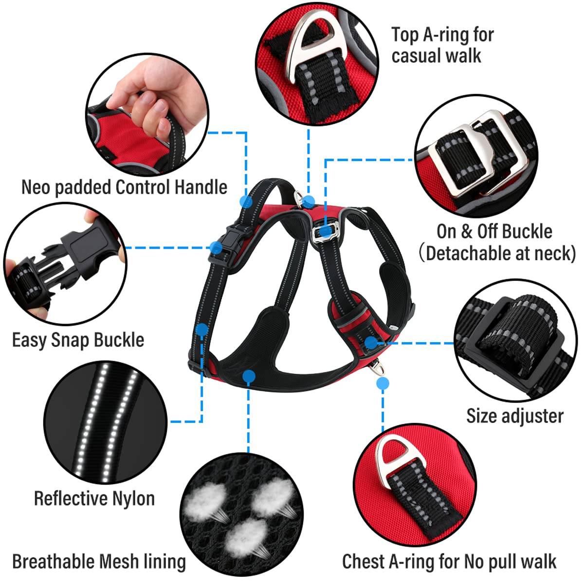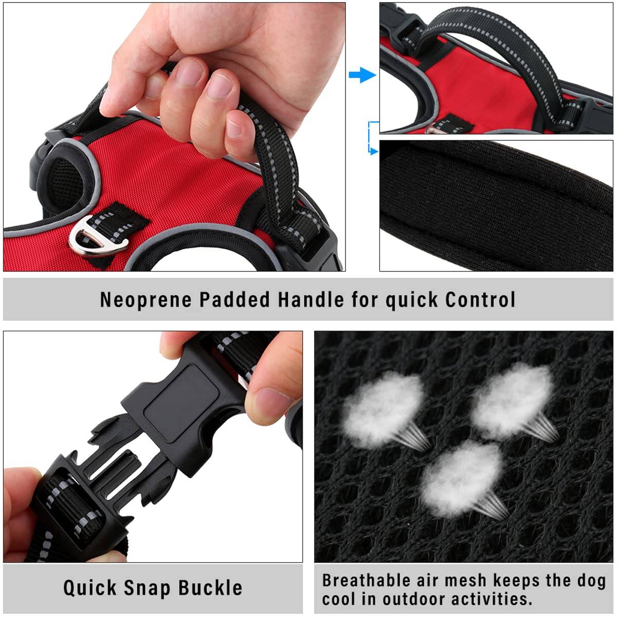 - ALL DAY COMFORT VEST: Made of durable nylon oxford cloth which is not easily torn with a soft cushion to protect your dog's skin. The breathable mesh padded vest keeps your dog cool during outdoor activities on hot day. Your pet will love to wear this dog harness while walking everyday.