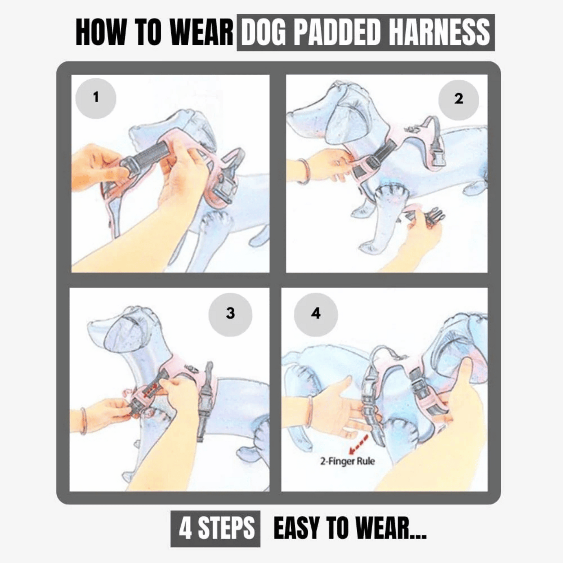 - ADJUSTABLE STRAP: This adjustable harness features 2 ways adjusting straps around the body which are easy for you to adjust the width and height. Create a non-slip fit for dogs with room for growth without worry about slipping or escaping.