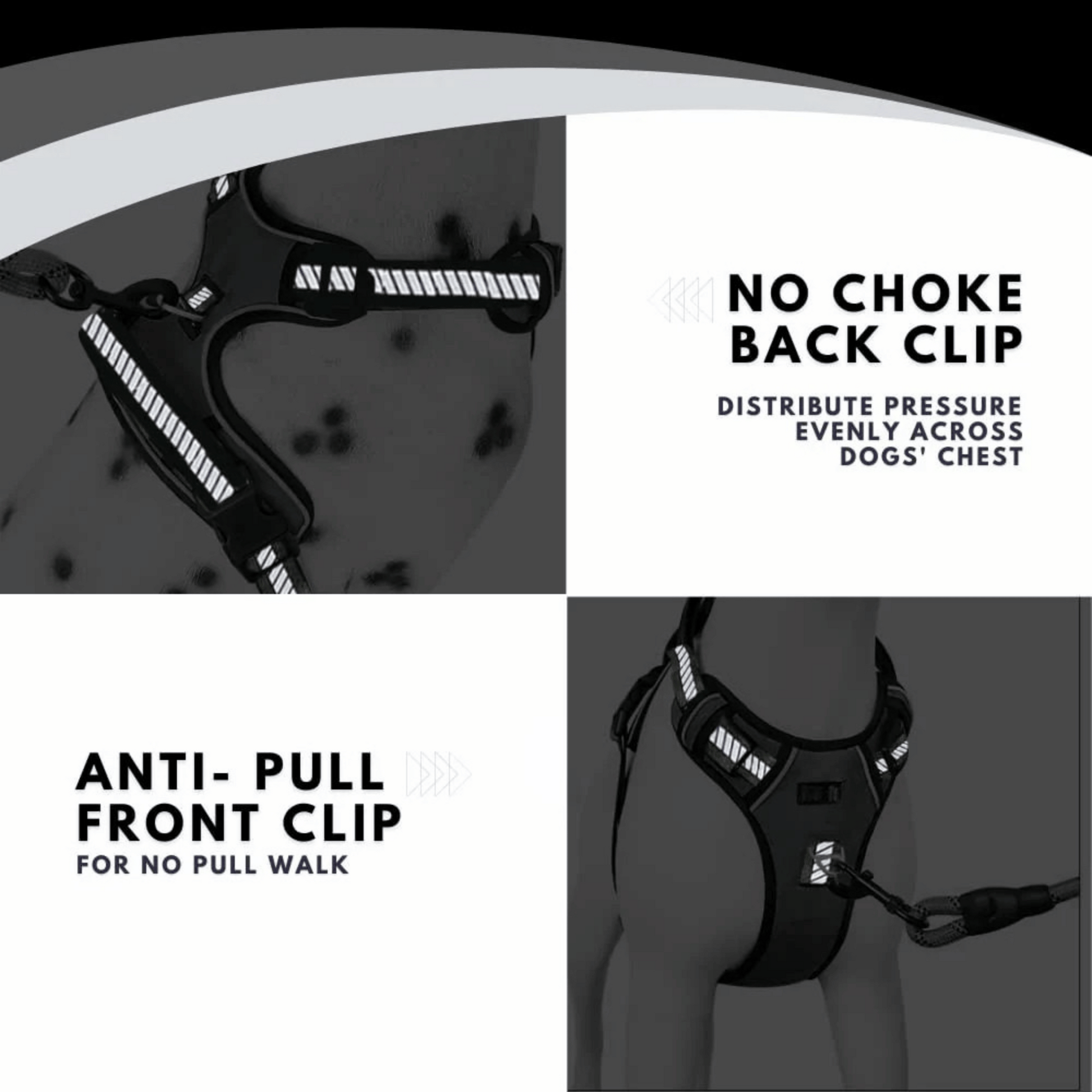 - NO PULL & NO CHOKE : There are two metal clips firmly connect to the gear's chest and back part, allow you tie the chest ring to control your puppy running without pressure and choking. You can also tie on the back ring to let your dog training, walking, hiking and outdoor adventure together.