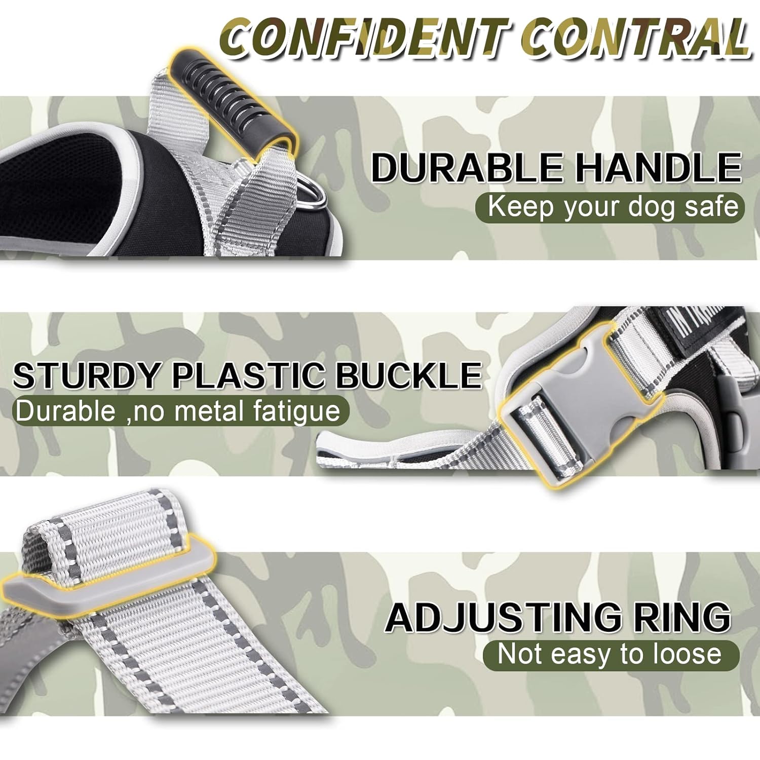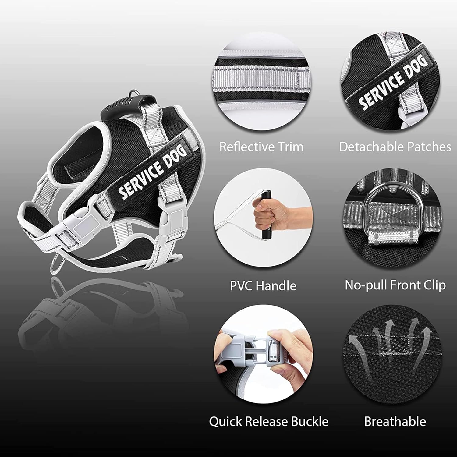 Premium Quality Service Dog Harness, No Pull in Training Dog Harnesses with Handle & Adjustable and Reflective No Chock for Small Medium Large Pets Walking and Running