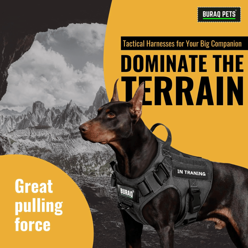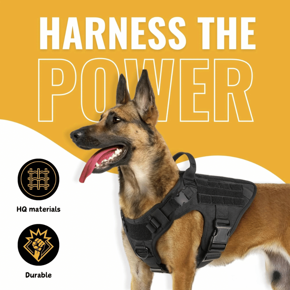 DESIGNED DOG'S COMFORT - Sturdy and snug! Made of durable Nylon with strong stitching for long-lasting use. Padded strategically for your pet's comfort. Features heavy-duty metal buckles for extra durability. This tactical dog harness ensures safety and comfort for you and your Dog