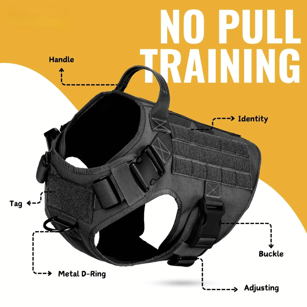 Tactical Dog Harness No-Pull Heavy Duty, Adjustable with Easy Handle (Large Size Dogs)