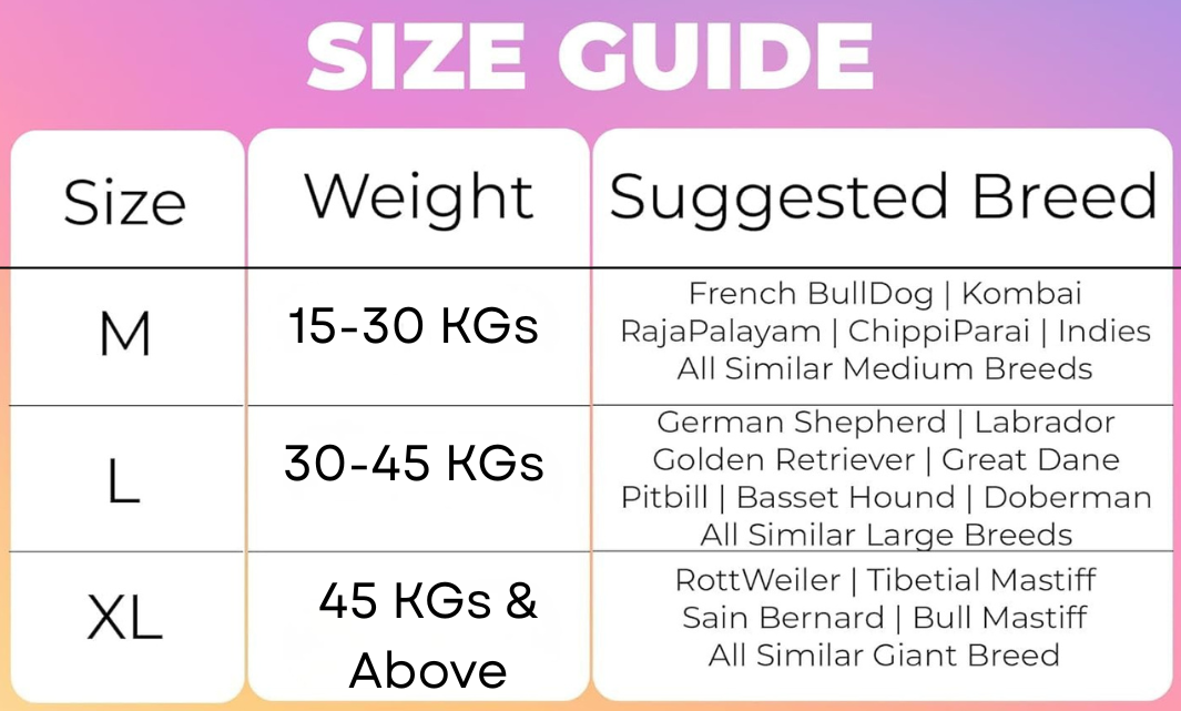 "CONFUSE ABOUT THE SIZE? NO PROBLEM! Just Order the product & Whatsapp us 8882915606 we will suggest you the best fitted size for your pet."