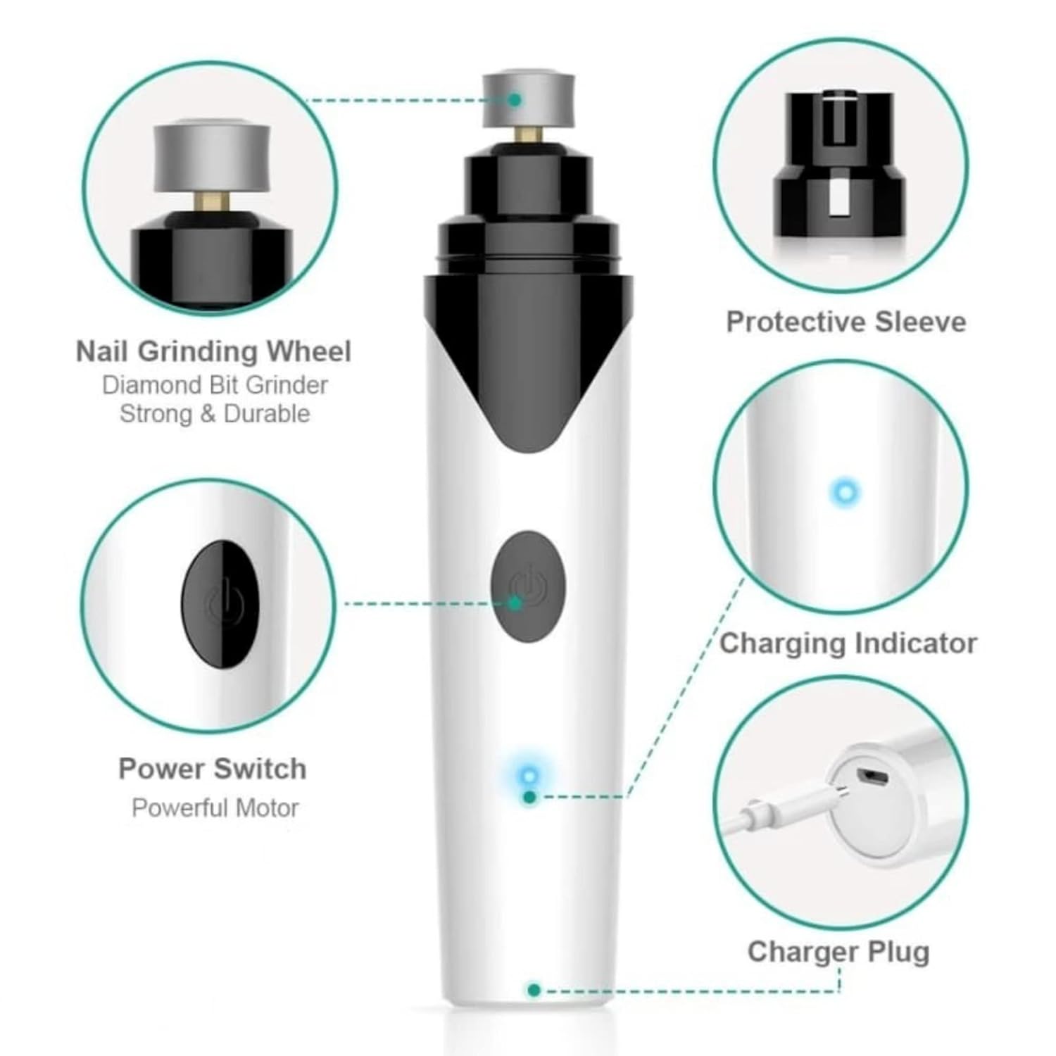 USB Rechargeable Pet Nail Trimmer - Low Noise, Painless Grinder for Pets